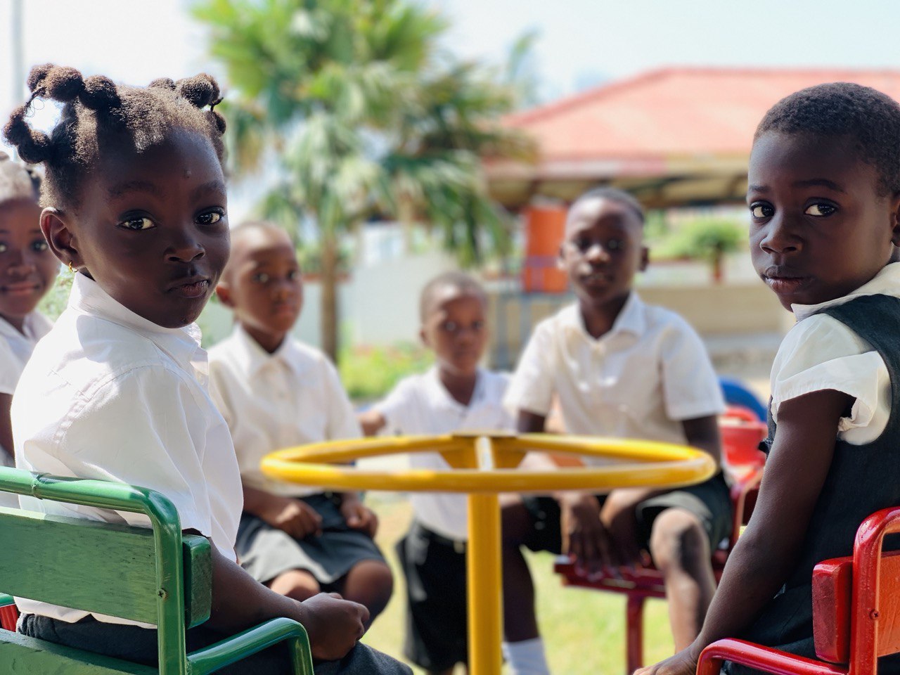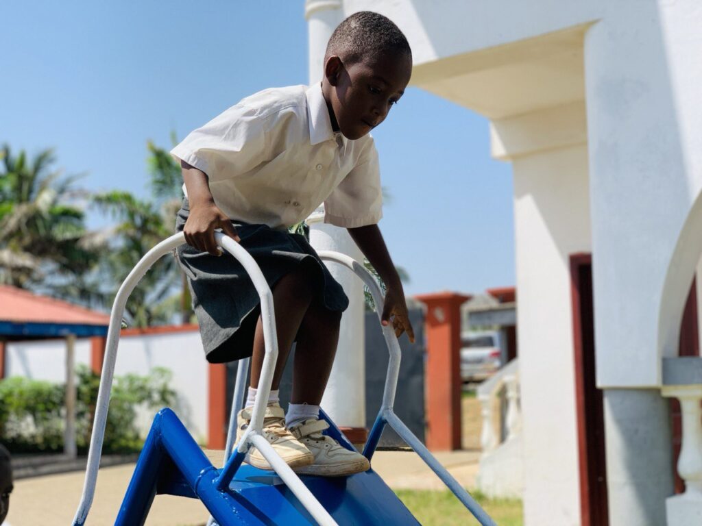 Our heartfelt gratitude goes to Tema International School, which facilitated the renovation of our playground through its Creativity, Activity and Service (CAS) project.  Our children are very excited with the new playground equipment and the repairs and re-painting of the older ones.  The coloured  tyres that have been used to build a fence around the playground are a real joy.