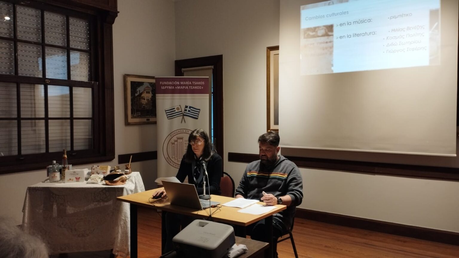 Week starting September 26th our Foundation organised informative and commemorative events on the 100th anniversary of the Asia Minor Catastrophe, with speeches, musical events, and the projection of films and documentaries. The Honorary President of the Foundation, Mrs. Margarita Larriera, gave a presentation entitled, “The Catastrophe of the 1922 and the rebetiko song“, accompanied by a choir and traditional musical instruments. This was followed by a speech, “The Asia Minor Catastrophe: a look at the Greek gastronomic vocabulary“, by the Foundation’s Director, Mrs. Soraya Ochoviet and Professor of Greek cuisine, Mr. Matías Porteiro. Both presentations were a great success, and the main hall of the Foundation was filled with enthusiastic students and friends.