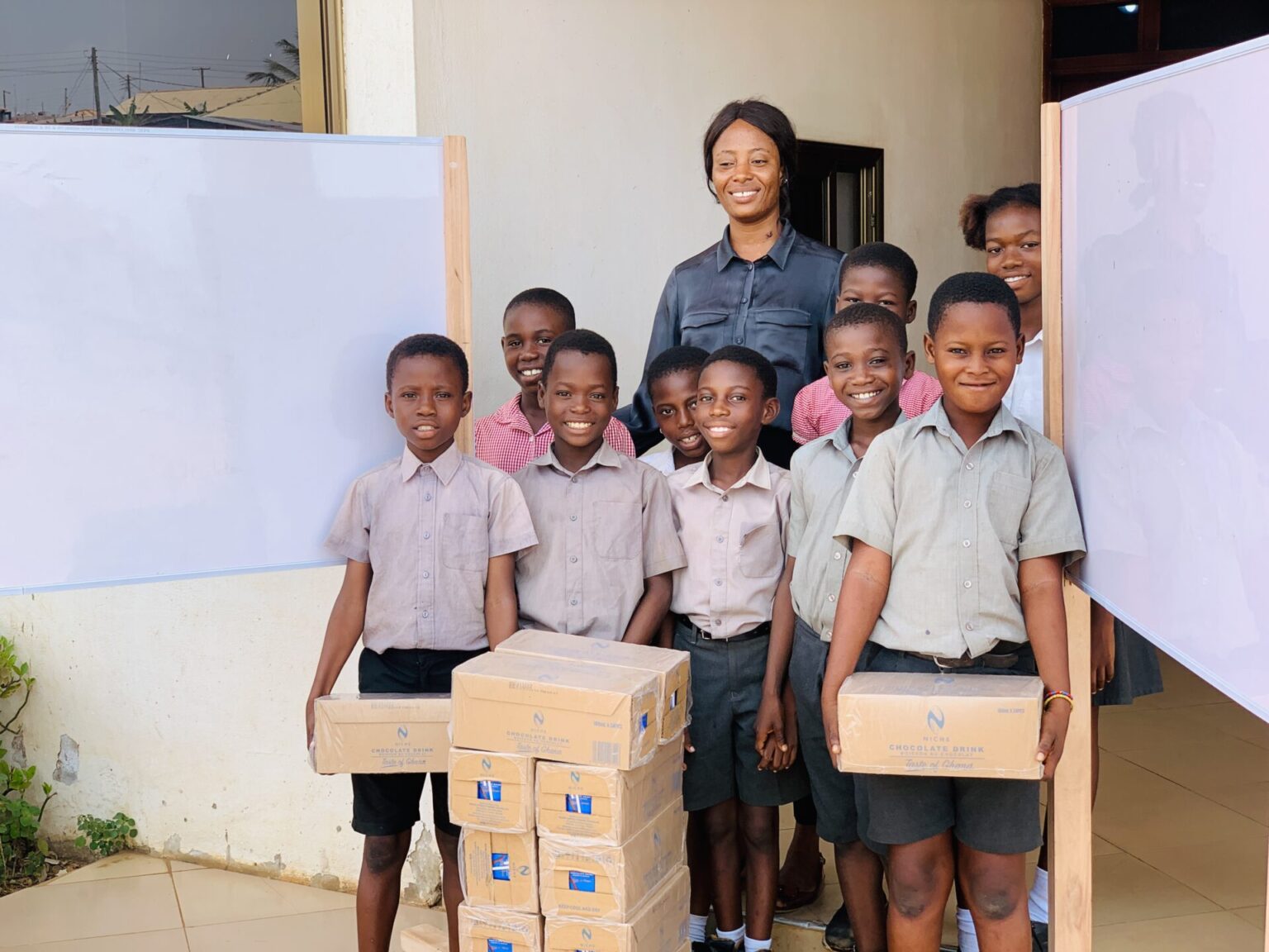 Στο πλαίσιο του κοινοτικού-κοινωνικού τους έργου, τρεις υπέροχοι μαθητές του Tema International School, ο Bryan Tamakloe, η Bryana Tamakloe και η Ewurama Fynn, πραγματοποίησαν δωρεά λευκών πινάκων για να βοηθήσουν στις εκπαιδευτικές μας δραστηριότητες καθώς και σοκολατένια ροφήματα, ενισχύοντας το πρόγραμμα διατροφής μας. Είμαστε ευγνώμονες προς αυτούς τους νέους που σκέφτηκαν τα παιδιά μας και συνέβαλαν με τον τρόπο τους στη βελτίωση της ζωής τους. Αποτελεί ιδιαίτερη τιμή για μας να συνδιαλεγόμαστε με μια τέτοια κορυφαία ιδρυματική μονάδα και εκφράζουμε τη βαθύτατη ευγνωμοσύνη μας προς την κα Surama King, ένα από τα βασικά στελέχη του προσωπικού, τόσο για την στήριξή της όσο και για την πρόσκληση των παιδιών μας να συμμετάσχουν σε ενδιαφέρουσες δραστηριότητες και εκδηλώσεις στο χώρο τους.