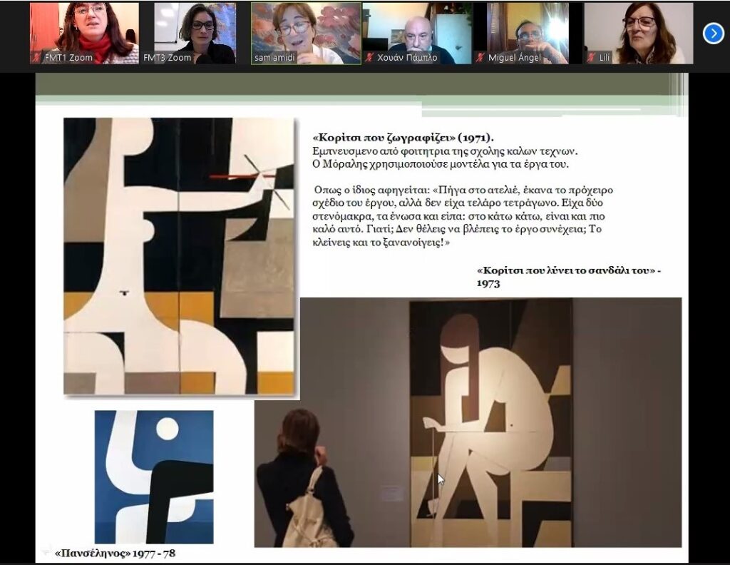 Η Ελληνίδα εικαστικός και εκπαιδευτικός κα Αικατερίνη Ανδρέου, που ήταν κοντά μας τον Ιούνιο για το Φεστιβάλ Montevideo Comics, πραγματοποίησε εξ αποστάσεως δύο παρουσιάσεις για τους μαθητές του Ιδρύματος. Στις 29 Αυγούστου την ομιλία «Η γυναίκα στην Ιστορία της τέχνης από την προϊστορία μέχρι σήμερα / Ελληνίδες ζωγράφοι, αυτές οι άγνωστες», ενώ στις 6 Σεπτεμβρίου, ασχοληθήκαμε με έναν μεγάλο Έλληνα ζωγράφο, μέσω του αφιερώματος: «Γιάννης Μόραλης: μια εισαγωγή στη ζωή και το έργο του». Στις ομιλίες, που έγιναν στα ελληνικά, με παράλληλη διερμηνεία στα ισπανικά, συμμετείχαν πολλοί μαθητές μας.