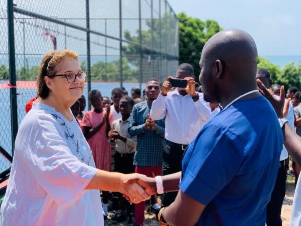 Η εντολοδόχος μας και Διευθύντρια κα Deborah Eleazar, εκφώνησε ομιλία στην οποία εξέφρασε την εκτίμησή της, ενώ παράλληλα ευχαρίστησε θερμά τον  Έλληνα Υπουργό Εθνικής Άμυνας κ. Νικόλα Δένδια για την τήρηση της υπόσχεσής του στην κατασκευή του γηπέδου.